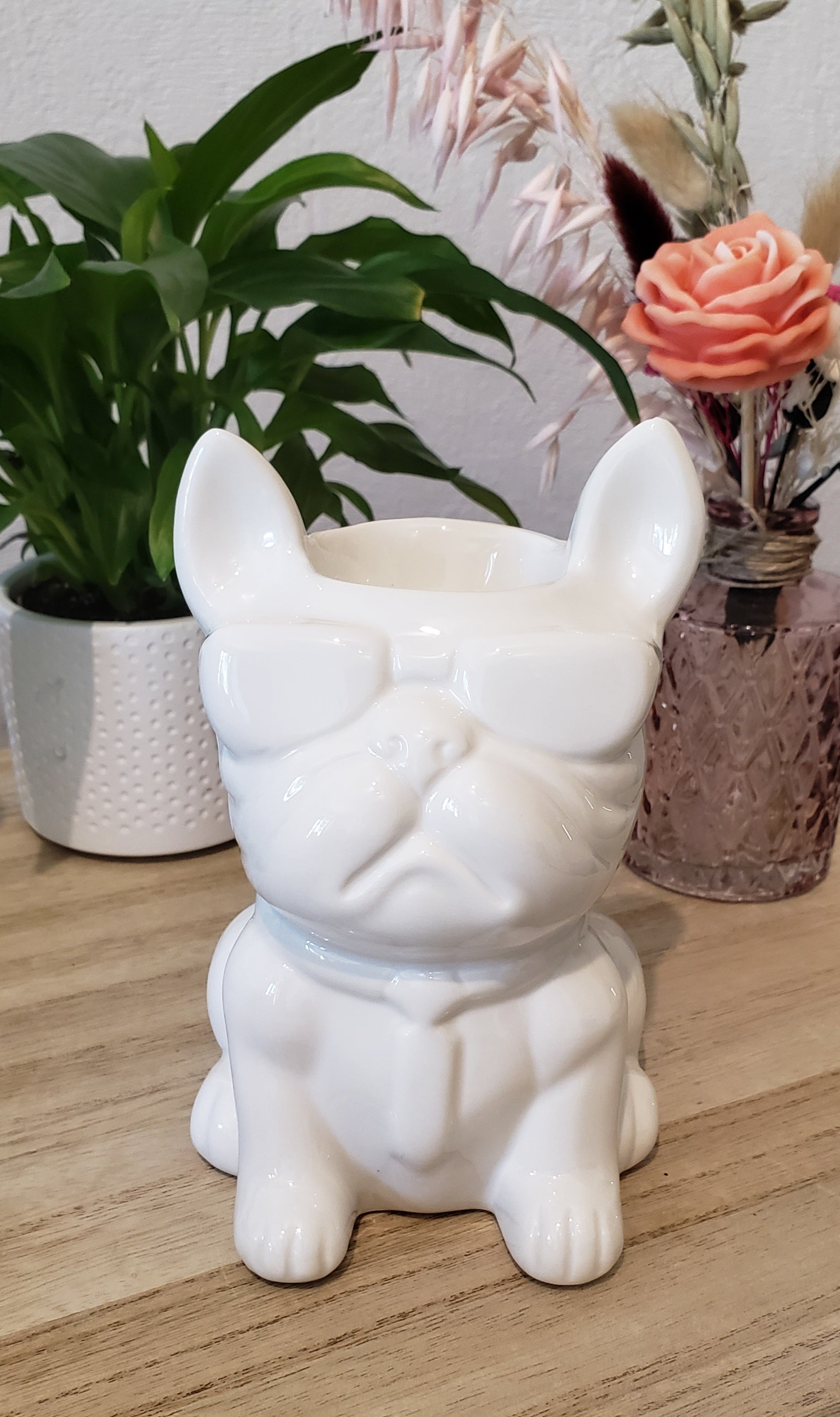 Ce petit bouledogue en céramique laquée ne manque pas de style! Il ajoute une touche de déco à votre intérieur.