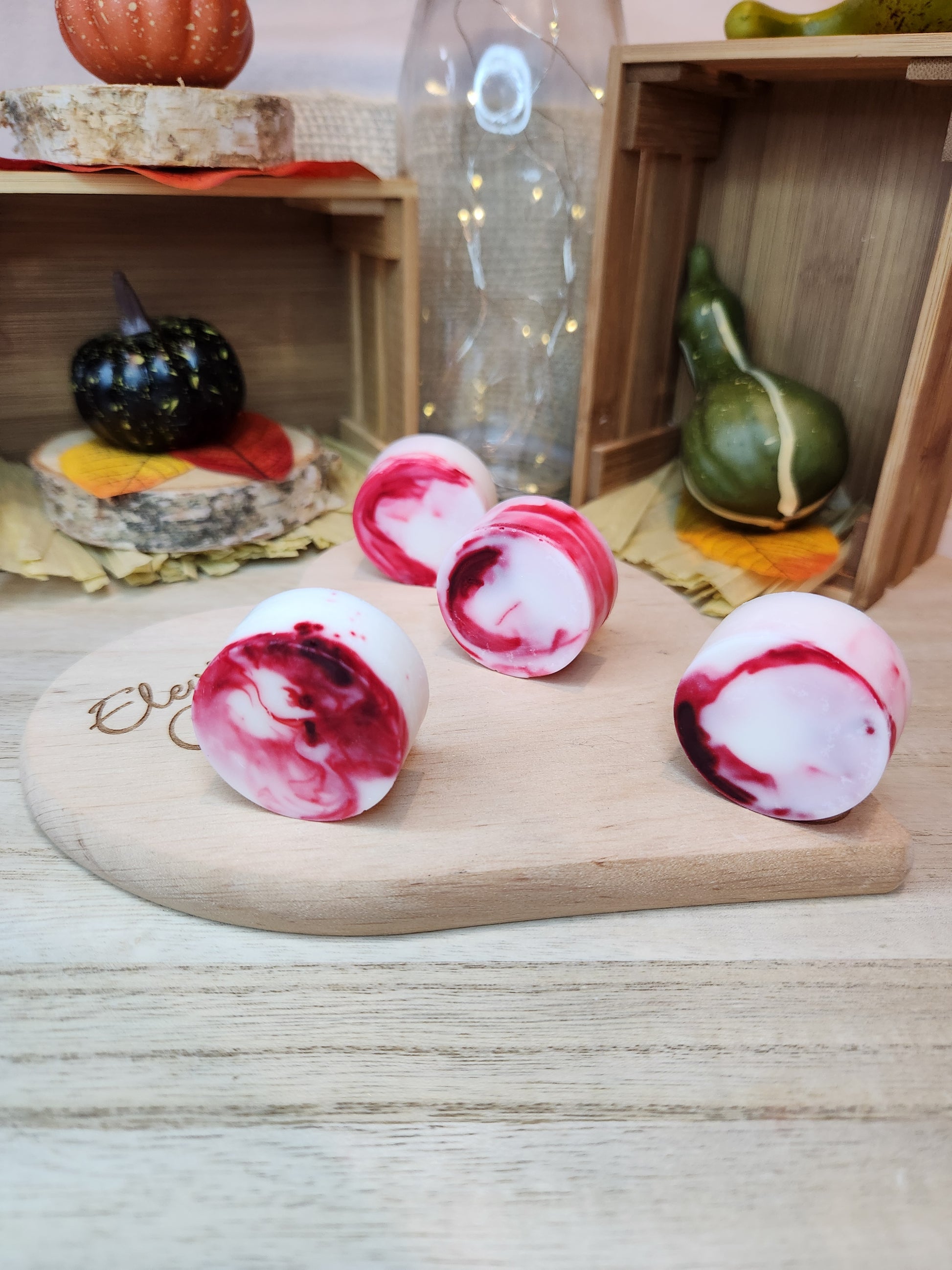 Cire de colza 90%, parfum 10%, mica, colorant.